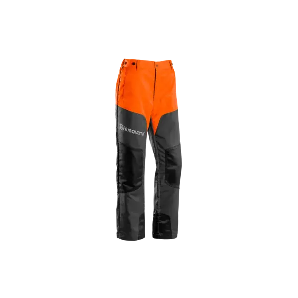 De Husqvarna Classic Entry is dé instapkettingbroek voor incidenteel kettingzaaggebruik en buitenwerk. CE-gecertificeerd volgens EN ISO 11393 Class 1 (20 m/s) en uitgerust met volledig afgedekte zaagbeschermlaag. Lichtgewicht (ca. 1,15 kg), met ventilatieritsen achter op de pijpen, duurzame katoen/polyester twill en comfortabele elastische taille.