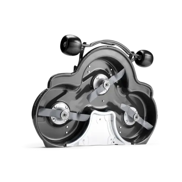 Met drie hoogwaardige messen en een geoptimaliseerde luchtstroom levert het maaidek een strak, egaal resultaat – zelfs bij hoger gras. Dankzij de robuuste stalen constructie is het dek bestand tegen intensief gebruik, terwijl de servicepositie het schoonmaken en onderhoud bijzonder eenvoudig maakt.