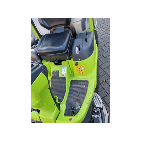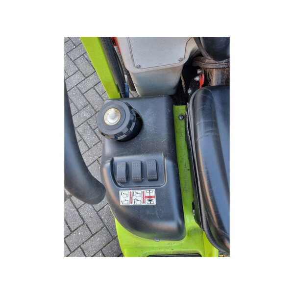 Grasopvangsysteem voor afvoer Grasopvangbak lossen en heffen hydraulisch bediend. Bewegingen worden geactiveerd door elektrische knoppen. De grasopvangbakopening wordt automatisch geactiveerd.